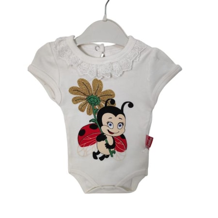 Set din trei piese compus din: body, bentita si fusta. Body cu imprimeu buburuza , cu capse pe umeri si intre picioare. Fusta ampla din mai multe straturi din tul, captusita, cu bata elastica in talie. Bentita buburuza aplicata.